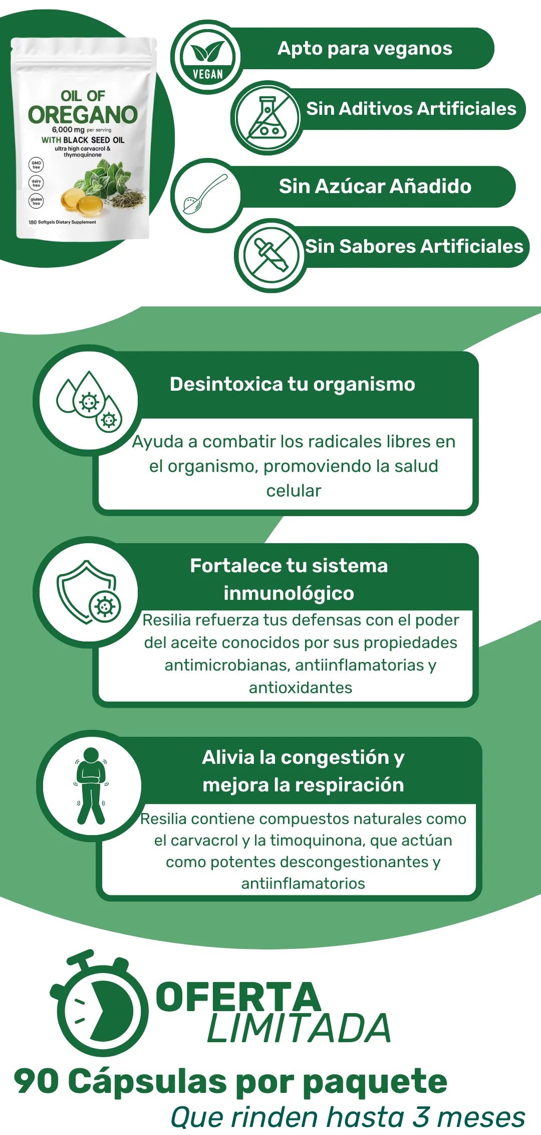 La dosis recomendada es de2 cápsulas al día,preferiblemente con una comida. No excedas la dosis sugerida a menos que un profesional de salud lo indique.